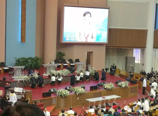 第一次见这么大的场面 ,这么多的人秩序井然,也无人喧哗,一边听着韩语敬拜一边看着屏幕上的中文歌词,(讲道时可以戴上耳机听到同声翻译,可以不用担心听不懂牧师说什么)虽坐在最边上的外国人专席,也能感受到会场圣灵的恩膏,听着歌声,想起主的爱,我的眼泪就止不住地落下……