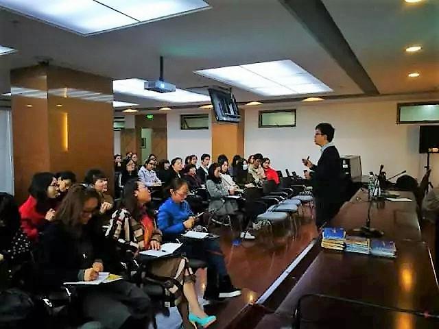 下午上台实操互动阶段,学员们分组上台进行角色扮演。模仿孩子和老师之间的互动,学习引导孩子互动对话。任瑞杰及时纠正出现的问题,给出适当建议。