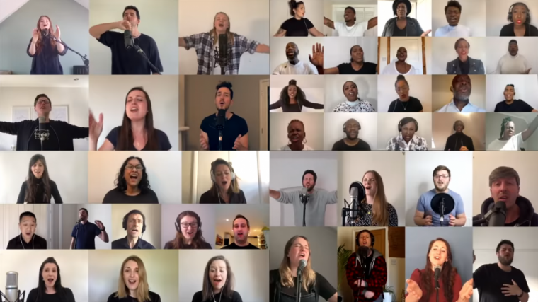 在YouTube上,一群因为封锁而居家的英国基督徒艺术家们合作录制的音乐视频收获了超过一百万的收看量。