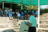 在加利利海旁的八福山,当地神父带领参会者进行早祷(图:以色列总理府新闻办)